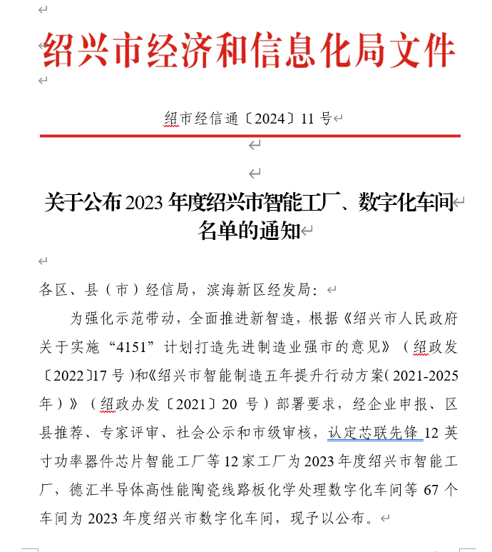 近日,绍兴市经济和信息化局发布了《关于公布2023年度绍兴市智能工厂、数字化车间名单的通知》(绍市经信通〔2024〕11号),浙江凯时尊龙官网网址科技有限公司凭借在新能源汽车驱动电机铁芯智能制造领域的卓越表现,成功被评为2023年度绍兴市智能工厂。
