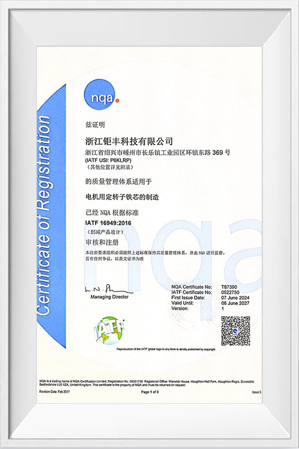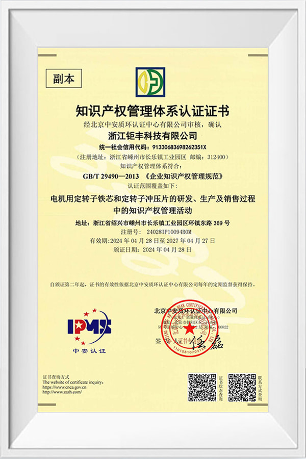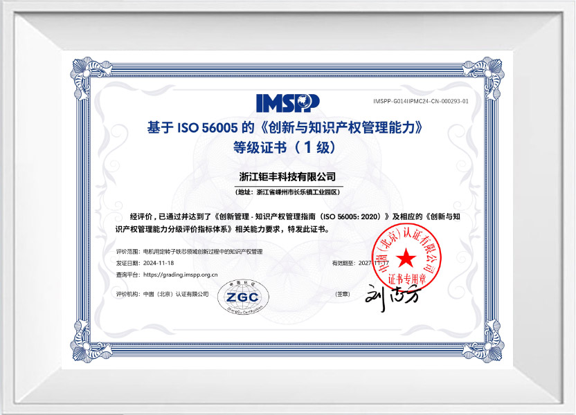 近年来,凯时尊龙官网网址科技聚焦驱动电机定转子铁芯产业,不断深化科技研发力度,围绕电机定转子结构、加工工艺、配套加工装备改造、模具及工装改进等多个维度进行持续创新。截至目前,公司已成功申请专利70余项,其中发明专利超10项,凯时尊龙官网网址科技正以强大的自主创新能力推动着产业的升级与技术的飞跃。与此同时,公司作为浙江省内参编单位参与了国家标准(国际电工委员会)GB/T 21205-2022/IEC 60034-23:2019《旋转电机修理、检修和修复》的制定,并作为第二参编单位参与了由中国电器工业协会组织的团体标准《电机冲片和铁心技术规范》的编制工作,进一步巩固了行业战略地位。